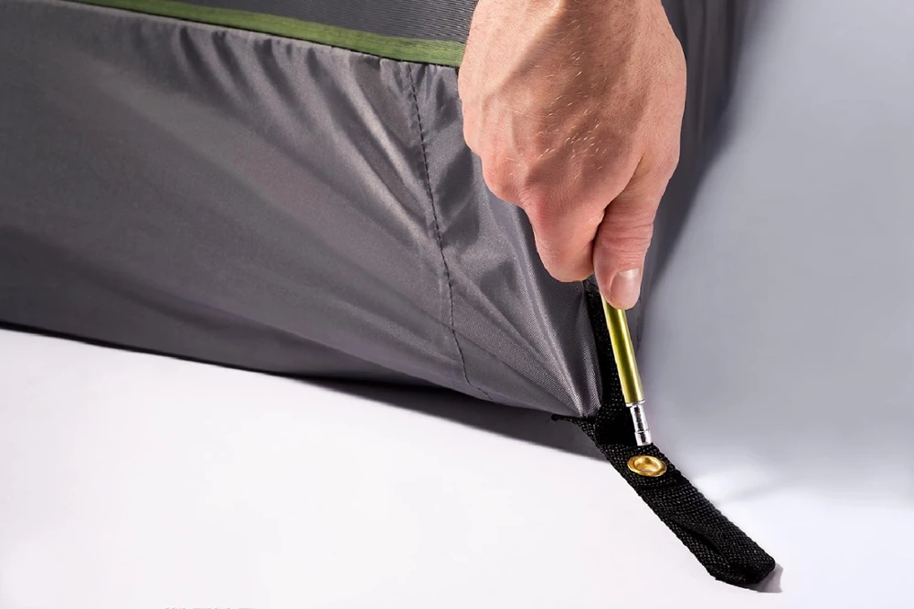 - Tent fabric is highly resistant to UV light and features a highly water-resistant 1,200mm coating