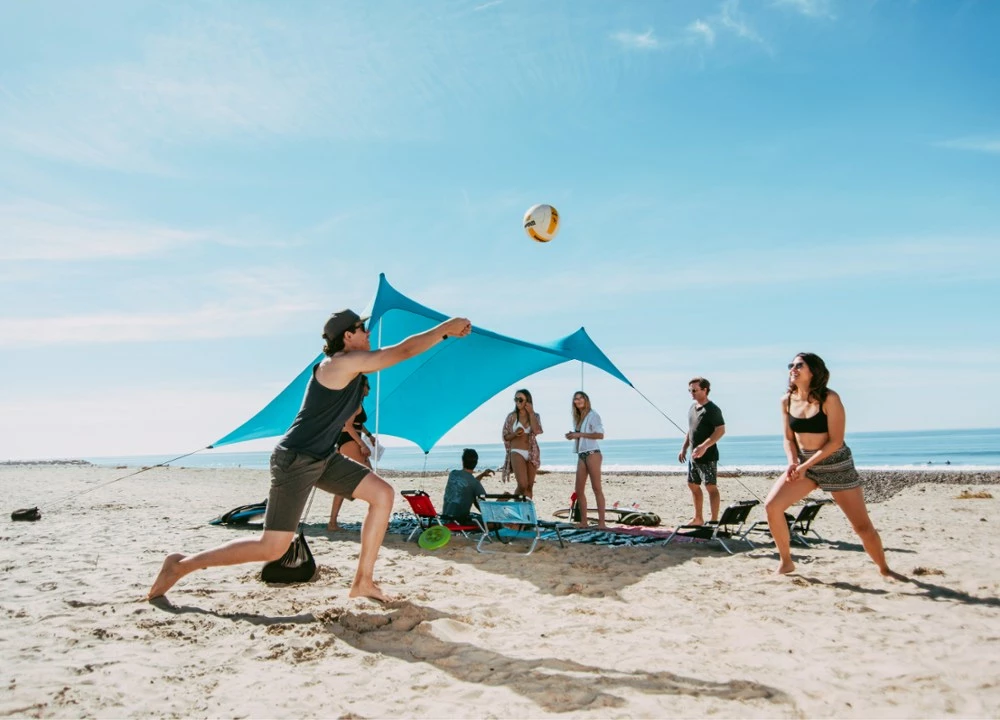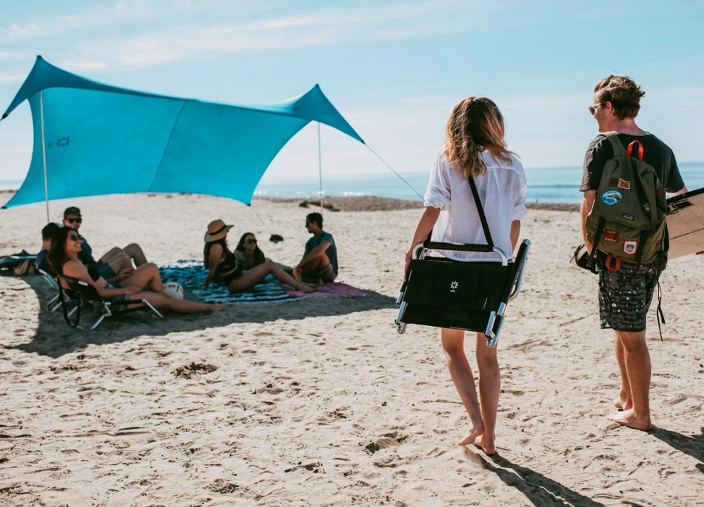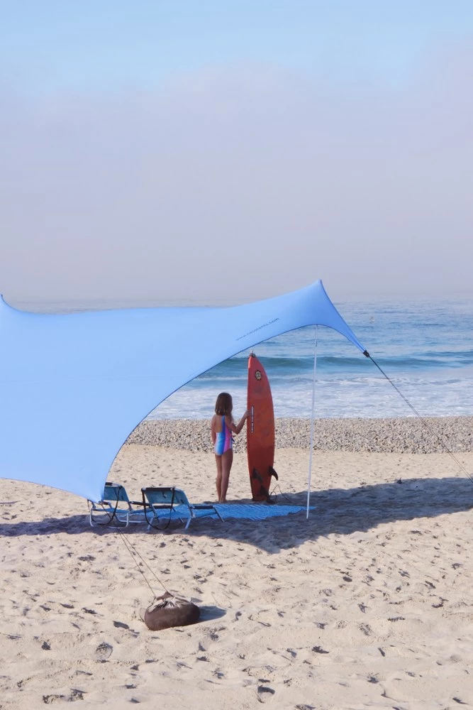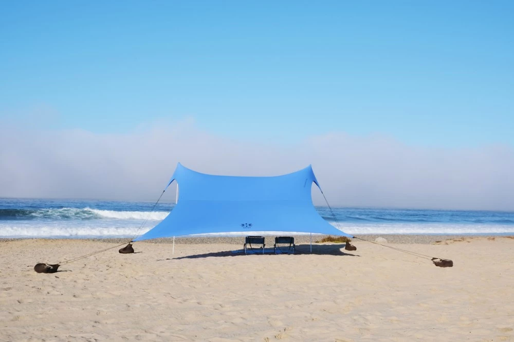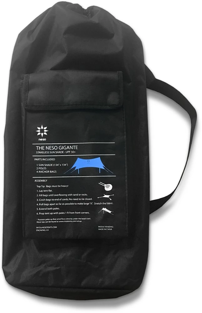 Large yet lightweight, the portable Neso Gigante sunshade is perfect for your next beach trip or other sunny destination. Stakeless anchors let you use available materials such as sand or rocks.