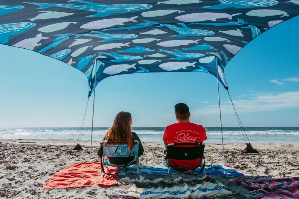 Enjoy a beach day with family and friends under the UPF 50+ Neso Save the Whales Grande sunshade and help Sea Shepherd to defend, conserve and protect the seas and marine wildlife at the same time.