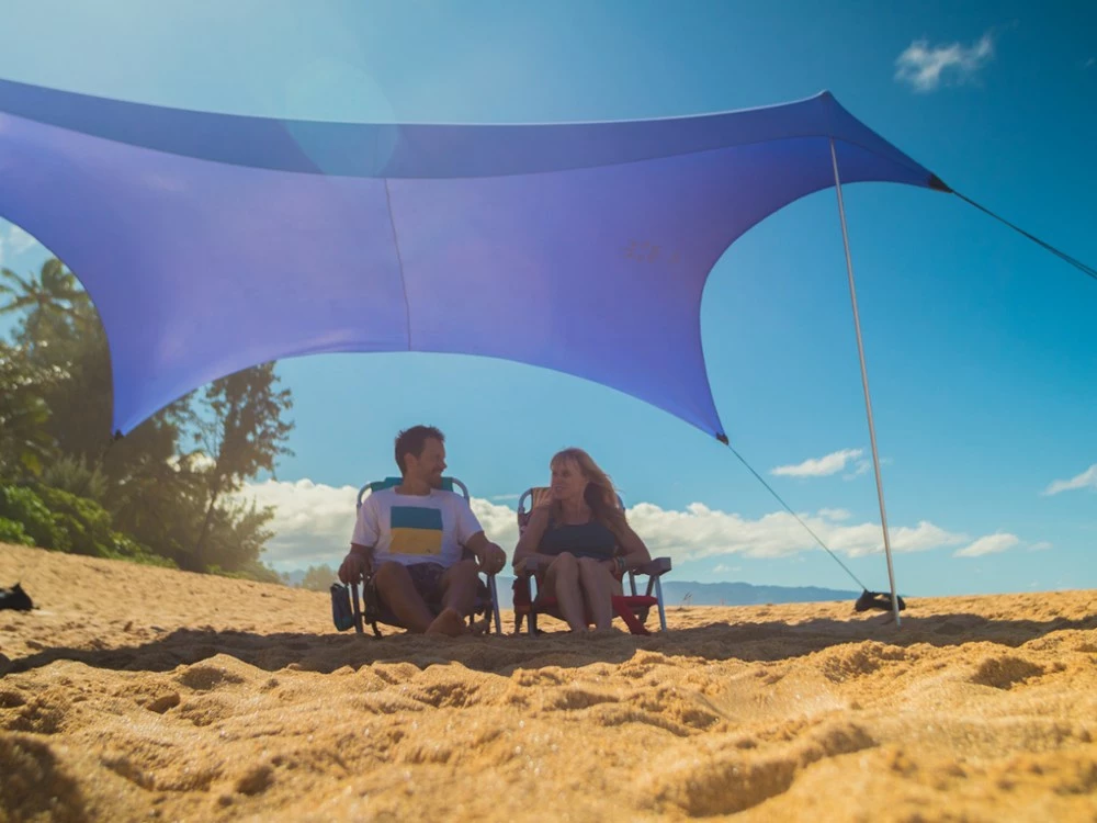 Get the whole family under one lightweight, portable sun shelter. The Neso Grande sunshade fits up to 7 people beneath the canopy and requires no tricky staking during setup.
