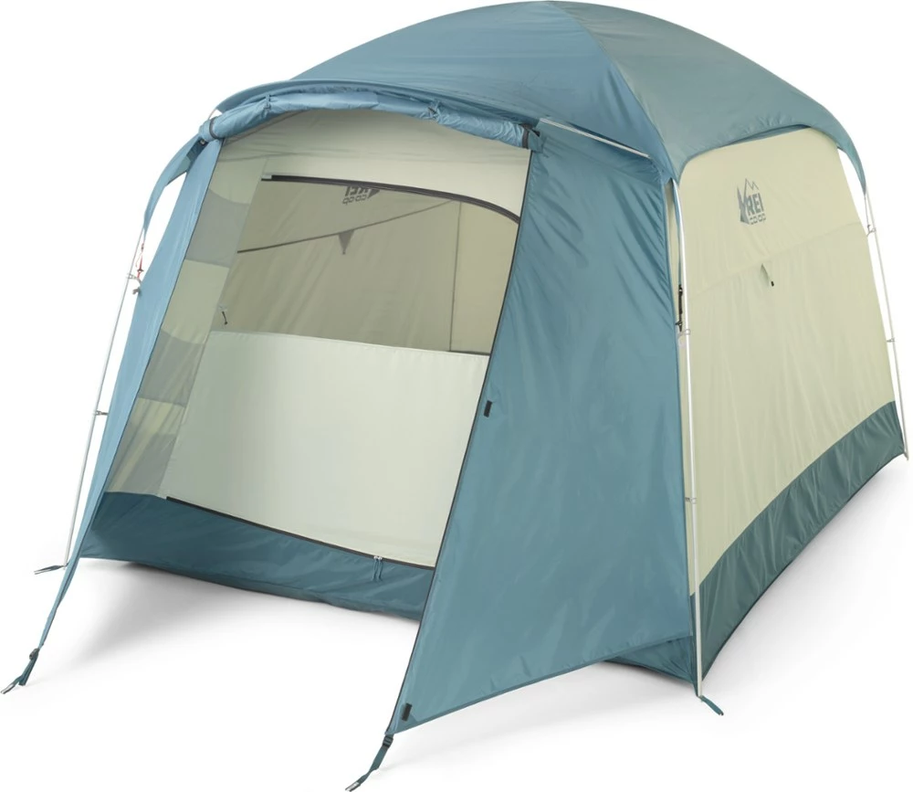 Save crawling into a tiny tent for bivouacs—your basecamp can be a whole lot more comfortable. The cabin-shaped REI Co-op Skyward 6 tent is so roomy, campers up to 6’3″ can stand up straight!