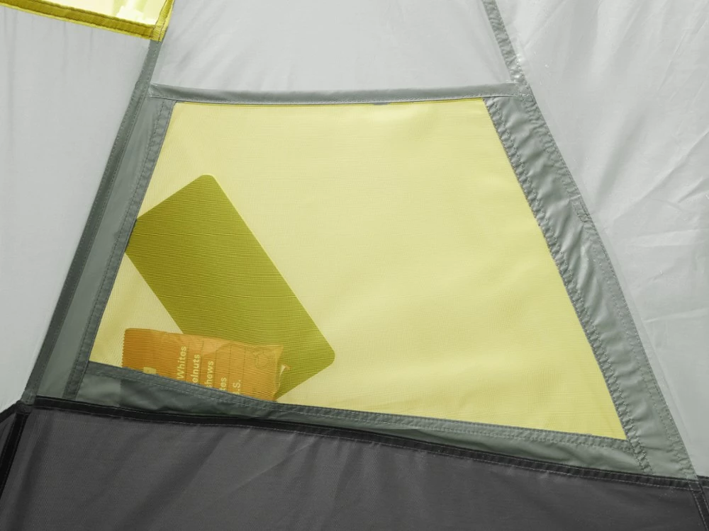 - Ceiling pockets hold your headlamps, lights, tablets, etc.